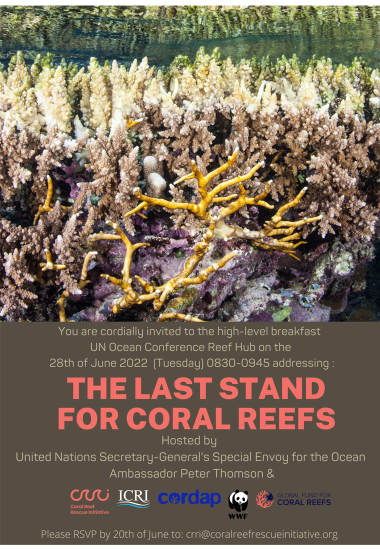 During the conference the Coral Reef Rescue Initiative (CRRI), together with the International Coral Reef Initiative (ICRI), Global Fund for Coral Reefs (GFCR) and Coral Research & Development Accelerator Platform (CORDAP), organised a high-level breakfast event The Last Stand for Coral Reefs.